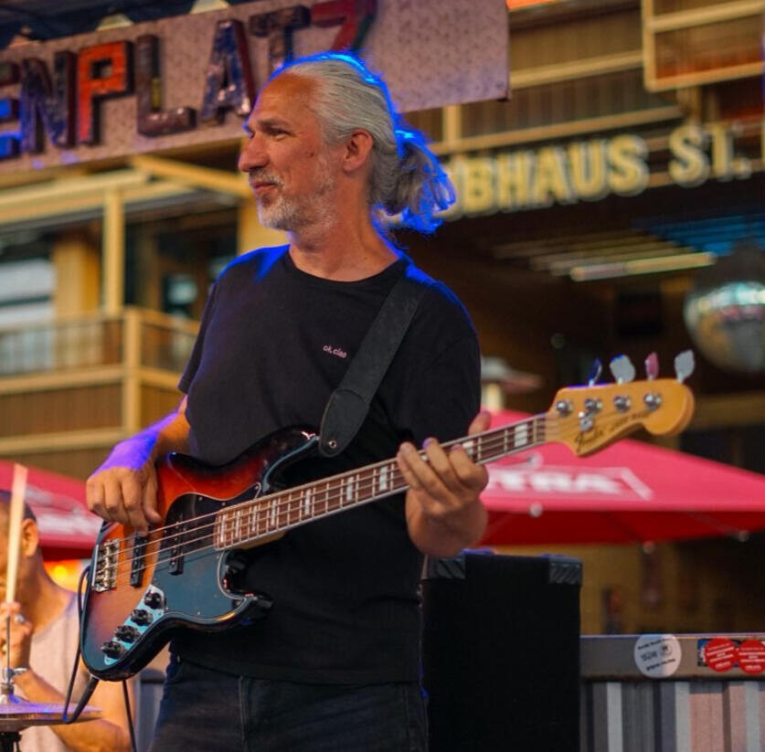 Four strings from the book of cool sounds. The bass is the bassist. The rhythm section incarnate, with the exuberant fun-loving nature of a paving stone. Committed to the bass, he has played such an indispensable role in so many bands that biographers have run out of numbers. He sets the tempo and fights against unplayability wherever it rears its ugly head. As Trashman, he is completely hopelessly addicted to brilliance and the noble ideal of perfect timing. Good humour comes naturally.